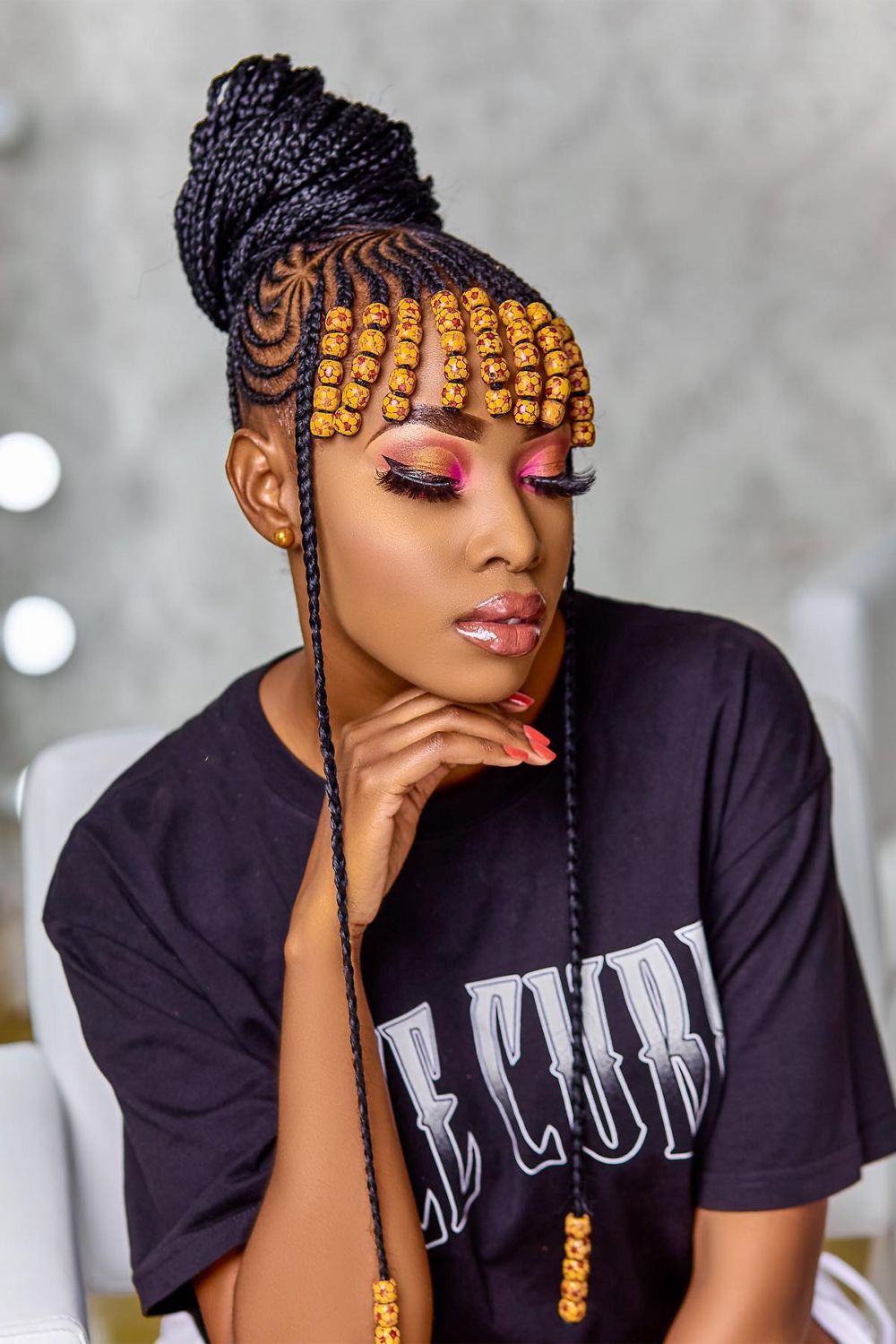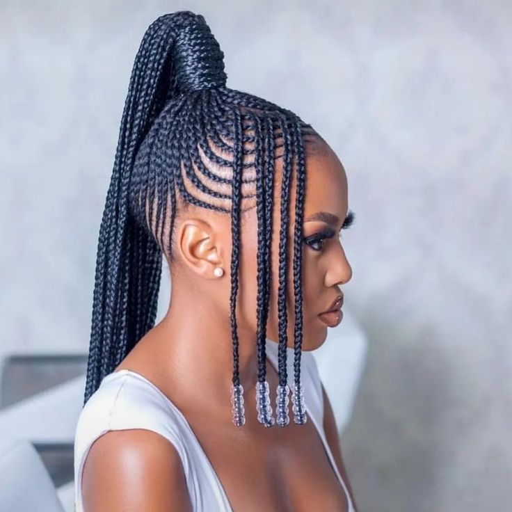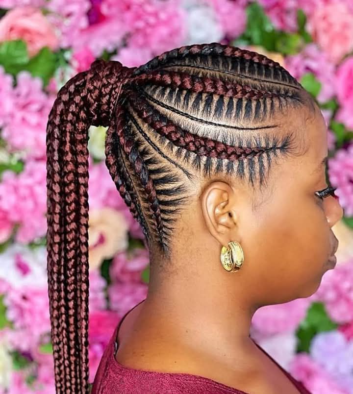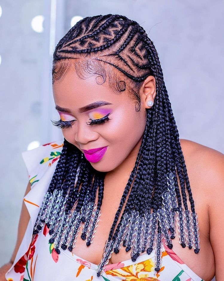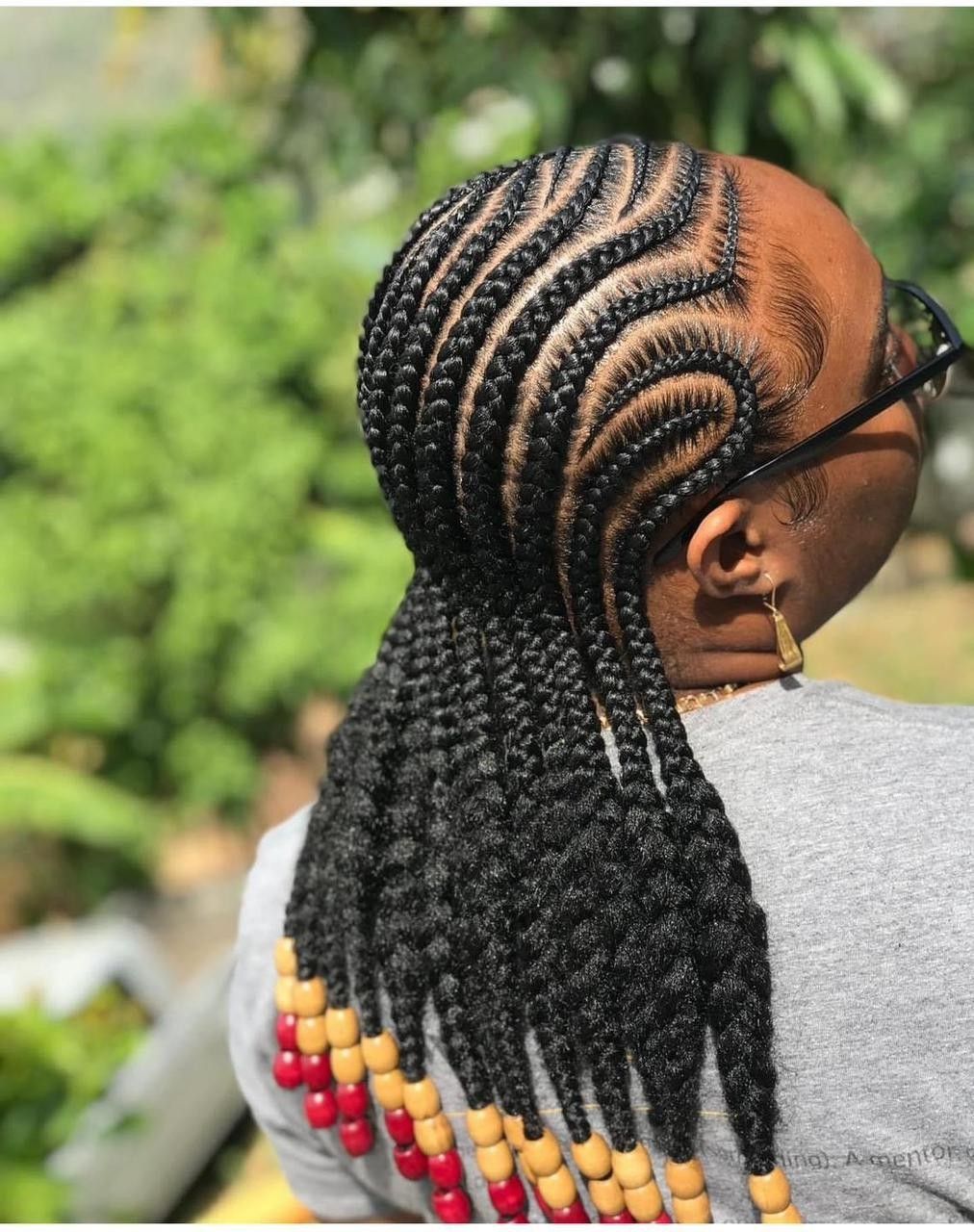 This combines cornrows with a tribal design. It can be long or short, accessorized with beads at the end.
