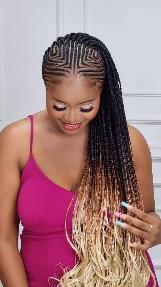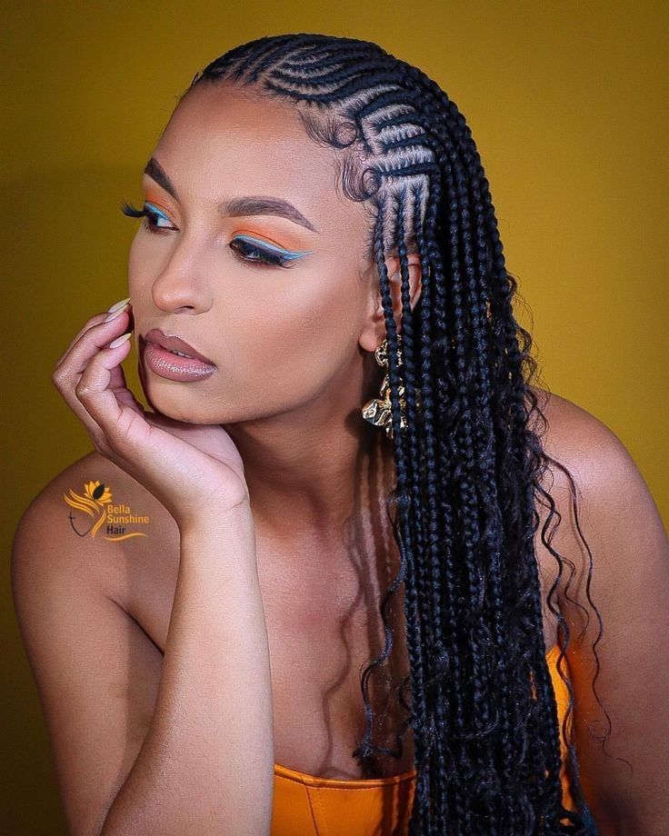 This braids were inspired by Beyonce after she wore the hairstyle in her 2016 visual album Lemonade. It is a side-swept, long kind of hairstyle with creative partings like zig-zags, curves or straight lines.